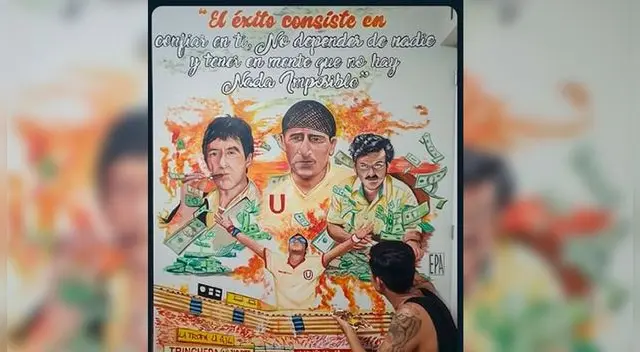 Hinchas de Universitario explotan al ver mural de 'Lolo' junto a Tony Montana y Pablo Escobar [FOTOS]