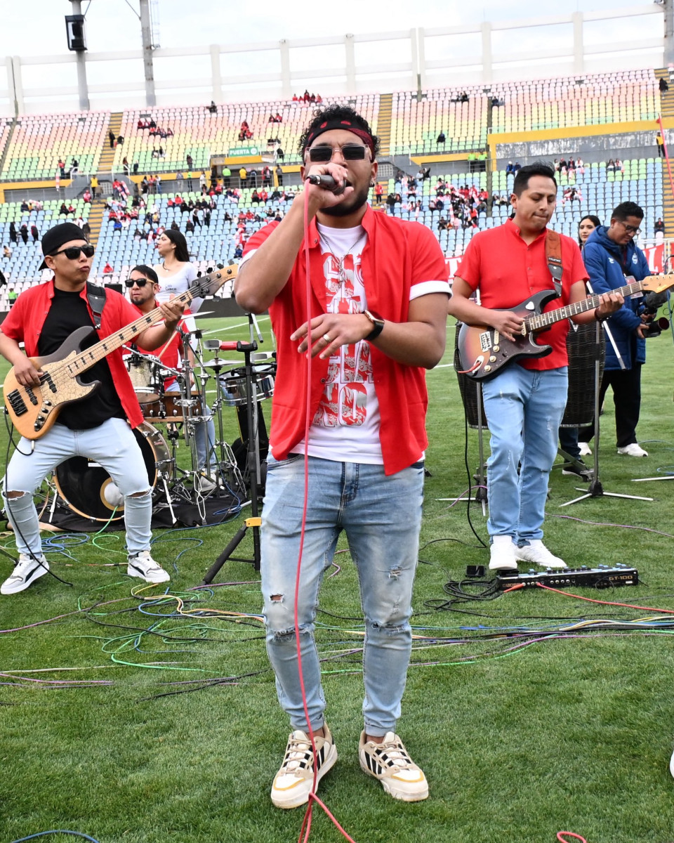El Grupo Maguaré, de origen cusqueño, brinda un show musical en el estadio Garcilaso previo al partido ante Alianza Lima.