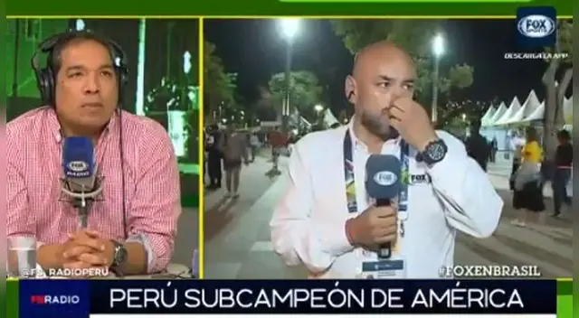 El periodista y narrador de Fox Sports Perú estuvo en Brasil durante toda la Copa América cubriendo de cerca los partidos de la Selección Peruana. Por ello, durante su transmisión en vivo Peter Arévalo no pudo contener las lágrimas tras la derrota nacional en esta gran final.