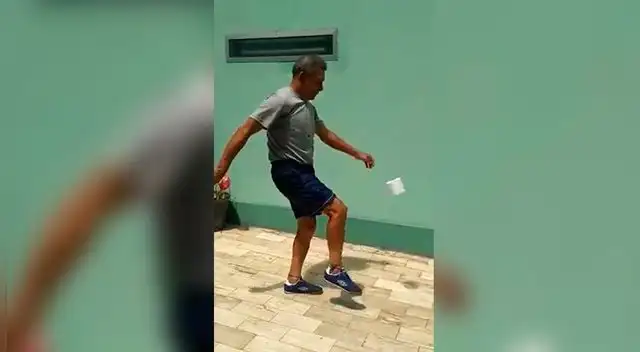 Chumpitaz, con 75 años encima, tenía que haber hecho los diez toques al rollo de papel higiénico pero solo realizó tres, convirtiéndose en viral de inmediato por las intenciones de sumarse al aislamiento social.