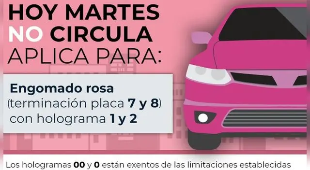 El Hoy no circula seguirá aplicándose durante la cuarta semana de abril. Este martes 20 de abril de 2021 los vehículos con engomado color rosa, terminación de placas 7 y 8, con hologramas 1 y 2, no podrán transitar en las calles de Ciudad de México (CDMX), Estado de México (Edomex) e Hidalgo.