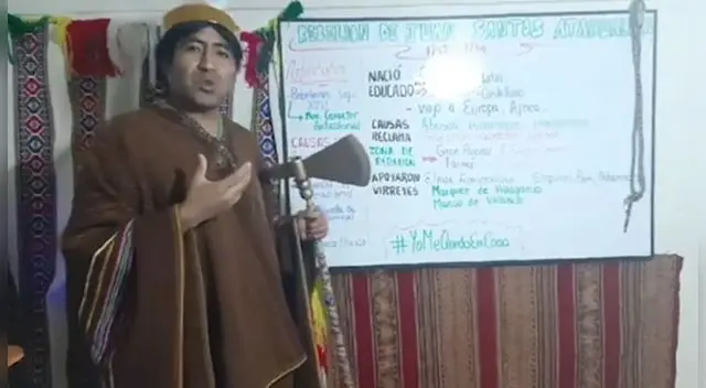 Juan Ebert Quispe, un profesor en el Cusco, causa sensación en las redes sociales por su caracterización, recientemente como inca, para dictar clases virtuales.