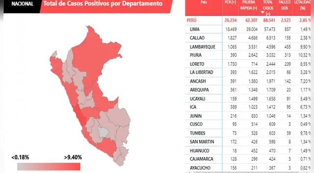 Coronavirus en el Perú: casos por departamento