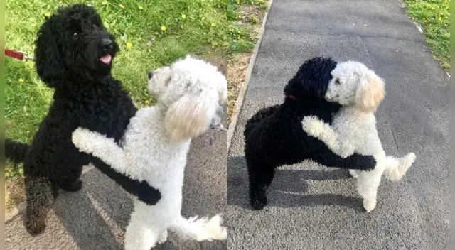 Esta historia fue relatada en Twitter por la dueña de uno de las dos mascotas. Según cuenta ella, su perro se acercó al otro y generaron un tierno agrazo que fue capturado en dos fotografías.