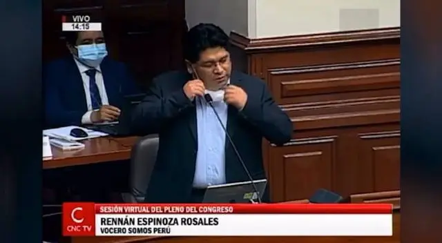 En pleno debate, Rennán Espinoza se sacó la mascarilla para prevenir el coronavirus para gritar y criticar al Poder Ejecutivo.