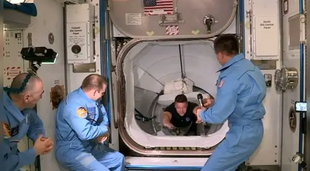 En un hecho histórico, los tripulantes Doug Hurley y Bob Behnken desembarcaron y se unieron a la tripulación ruso-estadounidense que ya estaba abordo de la Estación Espacial Internacional.