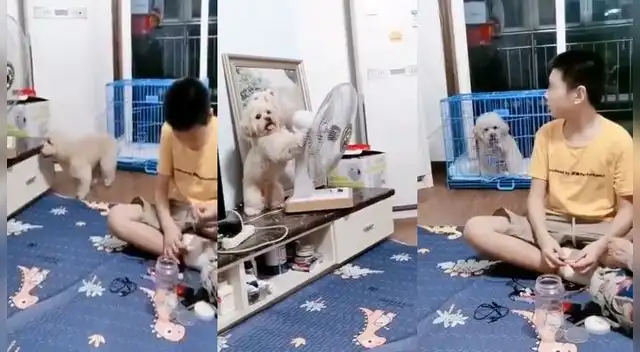 Según se puede apreciar en el nuevo viral en Facebook, un tierno perrito salió de su jaula para cambiar la dirección del ventilador y este apunte hacia su casa. Tras la faena, el can se volvió a encerrar y nadie lo detuvo.
