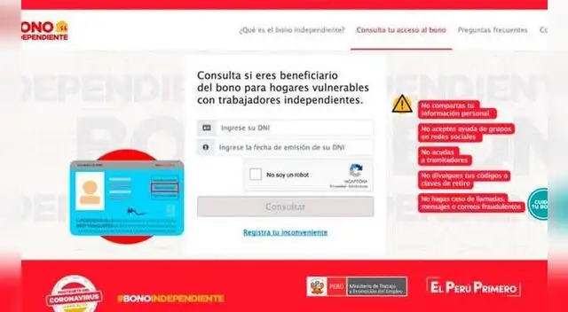 El Ministerio de Desarrollo e Inclusión Social dispuso una serie de requisitos para acceder al Bono Universal que otorga el gobierno de Martín Vizcarra en medio de la pandemia del coronavirus. Estas con las conficiones: