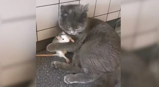 Tal como se aprecia en el canal ViralHog en Youtube, un gato se olvida de sus peleas con un rata y ahora lo cuida como si fuera su bebé. Sí, así como lo lees, el minino le perdonó la vida al roedor y ahora son mejores amigos.