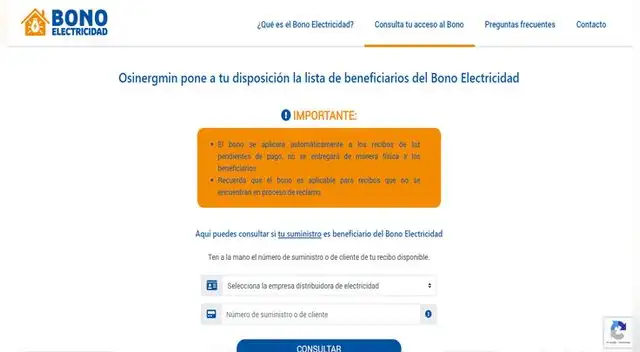 Para conocer si eres beneficiario deberás acceder a la página oficial del Bono de Electricidad: https://www.bonoelectricidad.pe/.