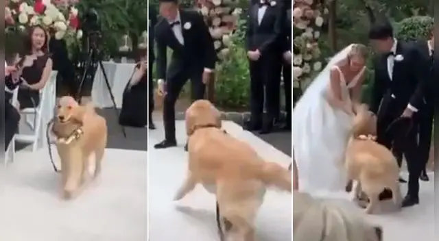 Es viralen TikTok. Este tierno golden retriever fue partícipe de la ceremonia y no pudo tener mejor tarea que ser el encargado de llevar los aros de matrimonio a sus amos.