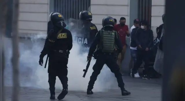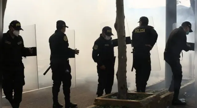 Los miembros de la Policía Nacional del Perú (PNP) usaron bombas lacrimógenas para dispersar a los manifestantes que marchan en contra de la vacancia presidencial por las calles del Cercado de Lima.
