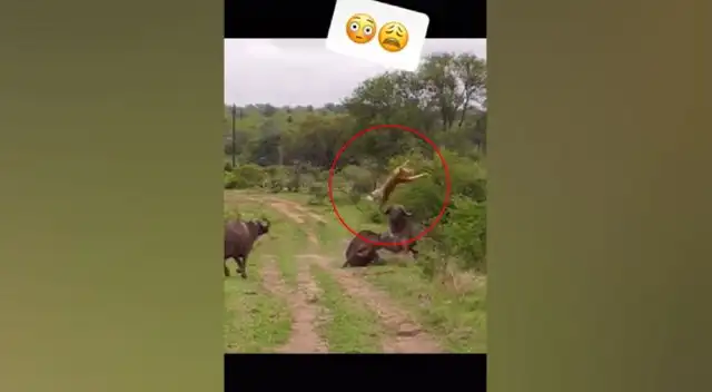 Búfalo hace volar a león de una cornada para salvar a su amigo que iba a ser devorado - VIDEO