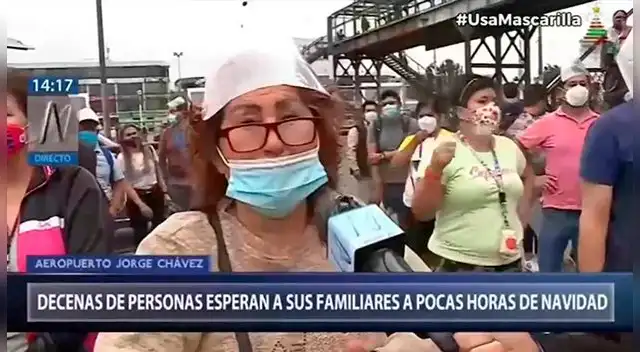 Esta señora es una de las tantas que en estas fechas importantes se dirige a las afueras del aeropuerto del Callao con la finalidad de reencontrarse con sus seres queridos, a los cuales no ven hace mucho tiempo.