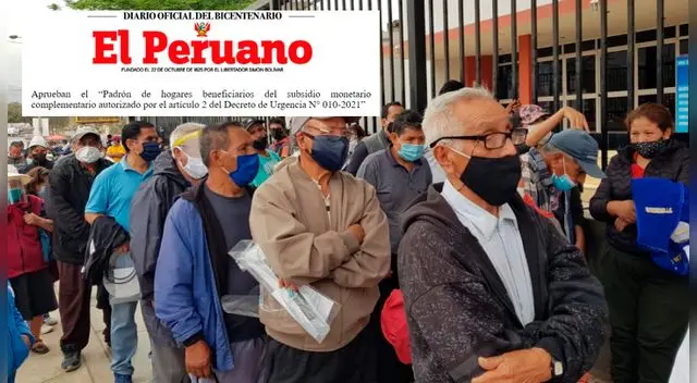 Ahora, el Ministerio de Desarrollo e Inclusión Social aprobó, mediante la Resolución Ministerial N° 029-2021-MDIS, el nuevo "Padrón de hogares beneficiarios del subsidio monetario complementario autorizado en el artículo 2 del Decreto de Urgencia N°010-2021"
