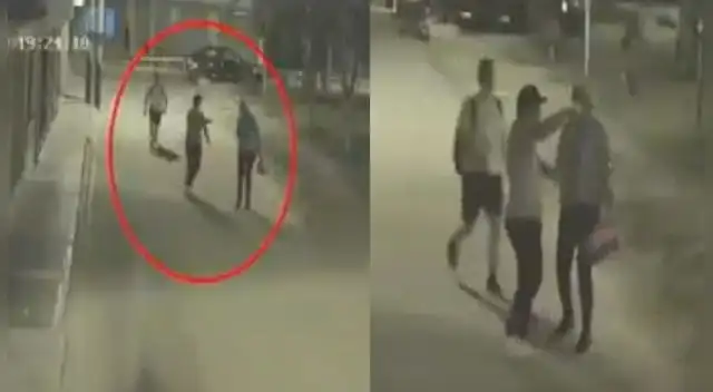 Las cámaras de seguridad de la zona, captaron el preciso momento en que la mujer se encontraba caminando cerca a un parque, cuando dos sujetos se acercaron a ella y uno de ellos la amenazó con un arma blanca.
