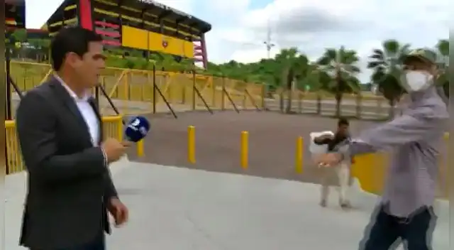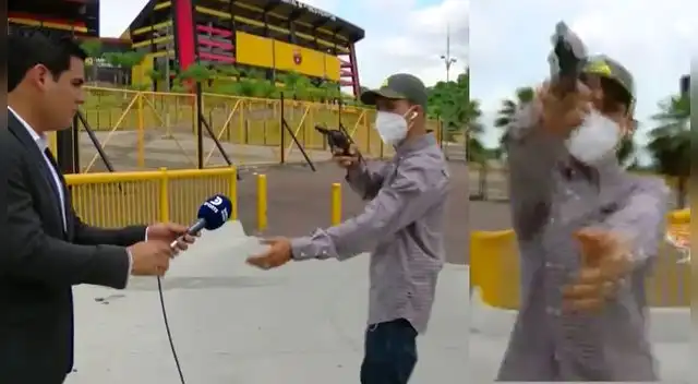 En redes sociales se ha hecho viral un video que da cuenta del terrible momento que pasó un periodista y su camarógrafo a las afueras del Estadio Monumental en Guayaquil, Ecuador. Ellos fueron asaltados por un delincuente a quien no le importó que el hombre de prensa se encuentre grabando un reportaje.