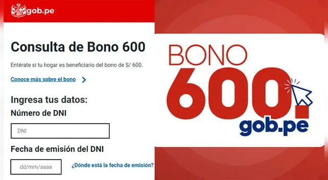 - Ingresa a http://bono600.gob.pe