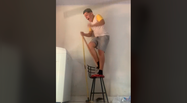 La cuenta "Geaclothing" fue la encargada de publicar este contenido, en el cual el chico con una escoba y encima de un banco "trata" de matar al pericote; sin embargo, su cobardía hace que no pueda ante la rápida velocidad del roedor para esquivar a todos.