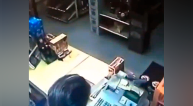 Adulto mayor ahuyenta a ladrón de una tienda poniéndole una pistola en la boca - VIDEO