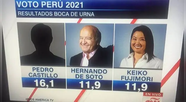 Según el Flash Electoral realizado por Ipsos, Pedro Castillo ocupó el primer lugar con 16.1%, seguido de Hernando de Soto y Keiko Fujimori, candidatos que obtuvieron 11.9% de intención de voto. En cuarto lugar aparece Yonhy Lescano con 11.0% y en la quinta posición se ubica Rafael López Aliaga con 10.5%.