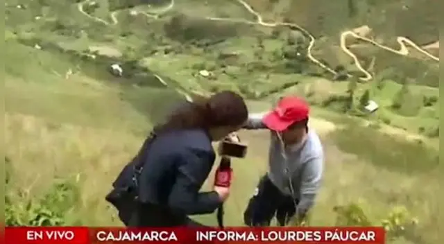 Lourdes Páucar es el nombre de la reportera que le venía realizando una serie de preguntas al candidato, sin embargo, al no escuchar muy bien las respuestas del postulante a Palacio de Gobierno, ella le pidió que suba la colina, pero Castillo se negó y la invitó a bajar a donde él estaba.