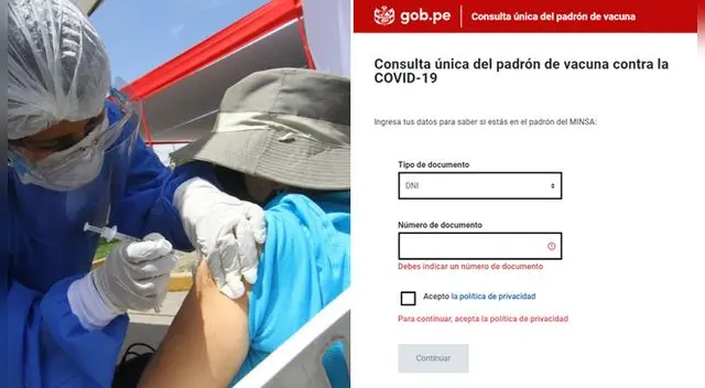 Pongo el hombro. El Ministerio de Salud, tal como se había anunciado, habilitó una nueva plataforma web con el padrón de vacunación, en la que se podrá consultar el registro para constatar si te están o no tomado en cuenta para ser inoculado contra la COVID-19.