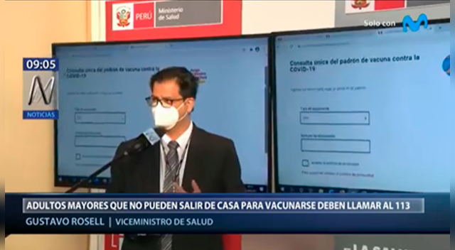 Gustavo Rosell, viceministero de salud, indicó que las personas mayores que no puedan salir de casa deben comunicarse al 113 o 107 para programar sus fechas de vacunación contra la COVID-19. El alto funcionario dijo que están preparando adecuadamente a los profesionales para cumplir con esta importante labor.
