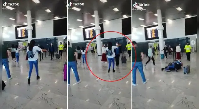 Todas las personas que se encontraban en el terminal aéreo se quedaron atentos a lo sucedido y soltaron algunas risas debido a que, felizmente, el hecho no pasó a mayores.