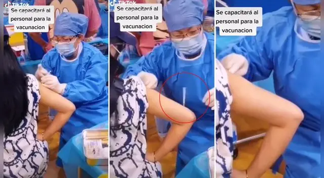 Según el chico que publicó el video en su cuenta de TikTok, el hecho sucedió en Santa Cruz, Bolivia y expresó su malestar preguntando si el personal de salud es capacitado antes de iniciar la inmunización a la población.
