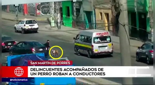 En los últimos días, dos delincuentes, acompañados de un perro, vienen aprovechando la congestión vehicular que se presenta en el distrito de San Martín de Porres para robar a los conductores y pasajeros.
