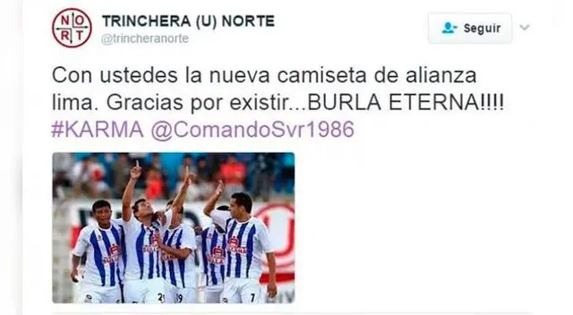 Otros internautas también hicieron sentir su voz en redes sociales, aunque no fue para quejarse por los modelos de camiseta, sino para hacer leña del árbol caído. Las burlas con memes estuvieron a la orden del día. El parecido con la camiseta del Alianza Atlético de Sullana y la indumentaria de un conocido dibujo animado fueron las bazas que utilizaron algunos hinchas de clubes rivales para mofarse de la nueva camiseta de Alianza Lima.