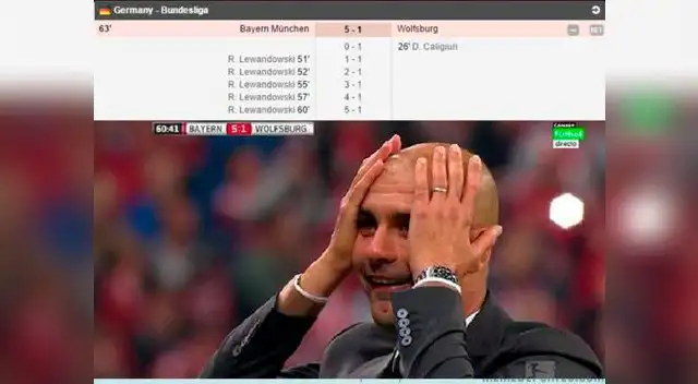 Increíble. El delantero del Bayern Múnich, Robert Lewandowski está siendo noticia por los cinco goles que anotó ante el Wolfsburgo en sólo nueve minutos, en partido válido por la Bundesliga. Los 'bávaros' estaban perdiendo por un gol, pero el técnico Pep Guardiola mandó a los 51 minutos al polaco y no perdonó al portero Benaglio.