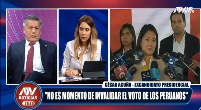 Durante una entrevista realizar con Juliana Oxenford, el excandidato presidencial y líder del partido APP, César Acuña, comentó sobre las denuncias de Fuerza Popular por presuntos incidentes de fraude durante la segunda vuelta de las elecciones 2021.