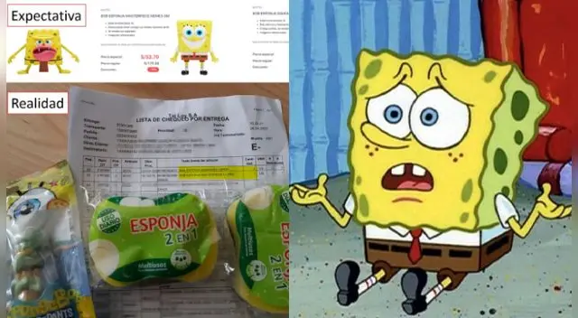 La usuaria de Facebook mencionó que, en lugar de llegarle los juguetes de Bob Esponja, recibió esponjas, sí, pero para lavar platos. “Se pasaron en verdad, pagué más de 50 soles por un juguete de Bob Esponja y me enviaron dos esponjas para lavar platos. Imagino que quieren desarrollar la creatividad de los pequeños de la casa. Ojalá algún día atiendan mi reclamo”, enfatizó en su post de Facebook.