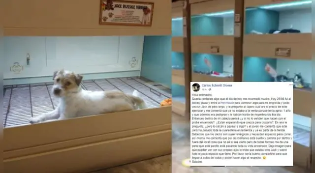 "Hoy 25 de agosto (ayer), fui al Jockey Plaza y entré a Pet House para comprar algo para mi engreída. Justo veo a un Jack de pelo largo y le pregunto al cajero cuál era el precio de este ejemplar, y me contestó que ya no estaba a la venta porque tenía aproximadamente 1 año y que, además, era pedigree y lo habían traído de Argentina", relató el usuario.