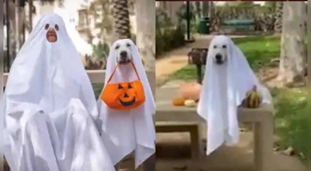 TikTok: dueño y su perro festejan Halloween con disfraces de fantasmitas - VIDEO
