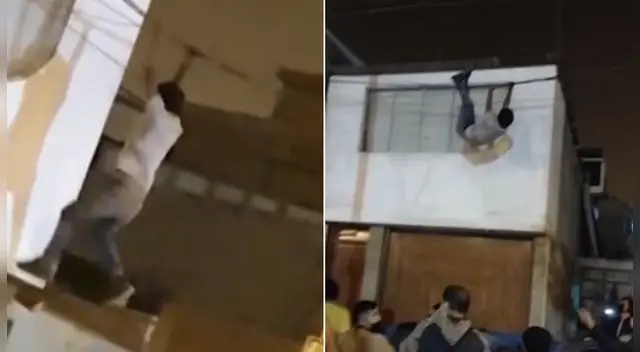 El sujeto escapó por el techo y luego saltó, quedando atrapado en los cables de telefonía. Miembros de la Policía y vecinos auxiliaron al sujeto, quien ya se ha sido identificado y llevado a la Dirincri para que responda por sus actos.