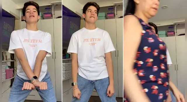 El adolescente estaba bailando al compás de la música Hula Hoop y de la nada apareció su mamá, quien no se dio cuenta que su hijo grababa un video para TikTok y subirlo posteriormente a redes sociales.