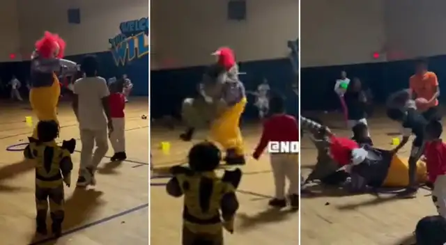 Uno de los niños le aplicó una especia de RKO e hizo perder estabilidad al payaso, quien terminó siendo la "piñata" de la fiesta.