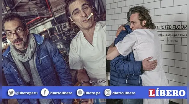 En las instantáneas se logra ver al actor Joaquin Phoenix en una de las últimas escenas de la película. Se le ve con bata y abrazando a su guía en el sacrificado proceso de interpretar a Joker.