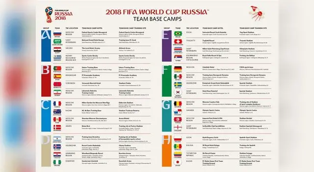 Desde la cuenta oficial de Twitter, FIFA dio a conocer el lugar y hoteles de las 32 selecciones que participarán en el Mundial de Rusia. Perú se queda en Moscú y el hotel de concentración será el Sheraton Moscow Sheremetyevo, ubicado a 5 minutos del aeropuerto internacional de la ciudad.
