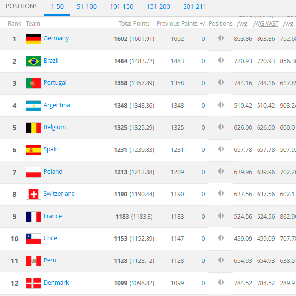 RANKING FIFA FEBRERO 2018