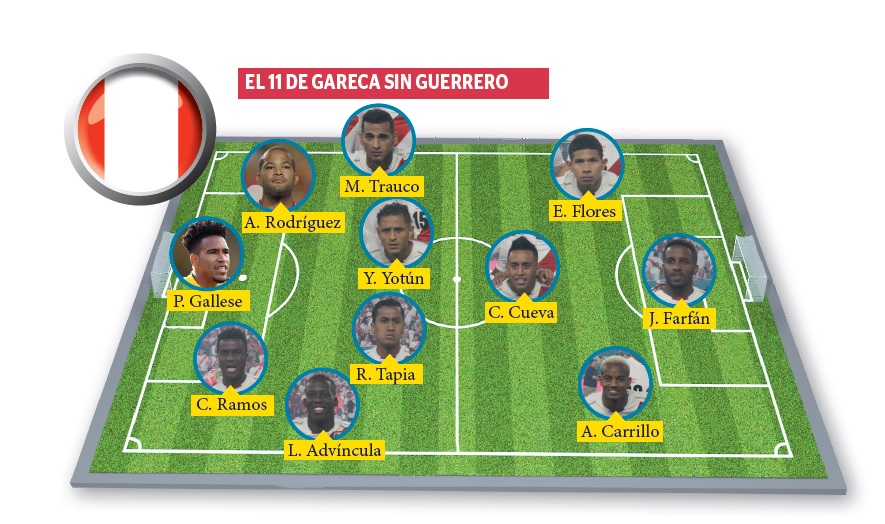 Con Paolo Guerrero fuera, Ricardo Gareca debe ensayar un nuevo esquema. Farfán sería el punta, teniendo como socios a Cueva, Flores y Carrillo.