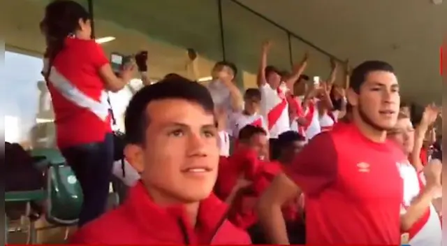 La sub - 20 viajó junto a la selección absoluta con el fin de ser el 'sparring' en los entrenamientos de los dirigidos por Ricardo Gareca. En el video se puede ver a los juveniles de pie aplaudiendo y alentando el gol del jugador peruano junto a un grupo de hinchas que acudieron a ver a la 'bicolor'.