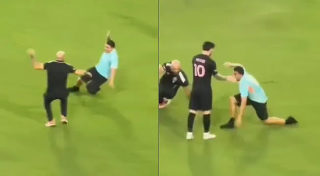 ¡Y un día pasó! El guardaespaldas de Lionel Messi fue vencido por un hincha que ingresó a la cancha durante el partido amistoso de Inter Miami vs. San Miguelito.