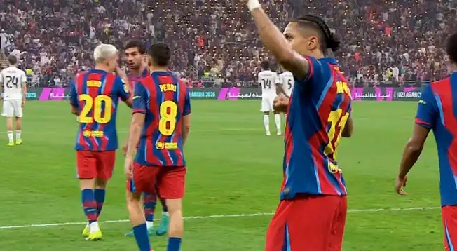 Sobre los 72 minutos del clásico, Raphinha anota el 3-2 de Barcelona sobre Real Madrid y hace ilusionar a los hinchas con el título de la Supercopa de España.